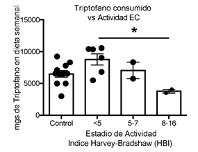Figura 3b: La cantidad de triptófano en dieta correlaciona con la actividad de la Enfermedad de Crohn.